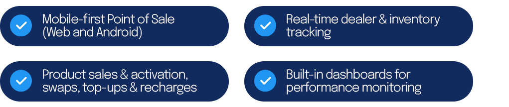 Ensuring on-the-spot sales, activation and recharge across regions.
